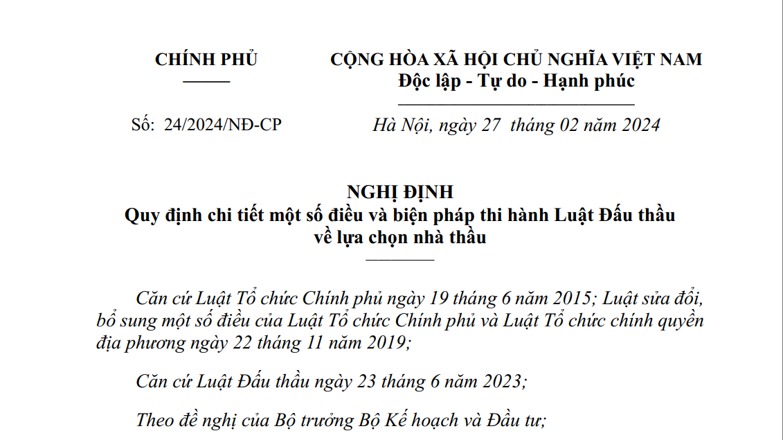 Nghị định số 24/2024/NĐ-CP Hướng dẫn Luật Đấu thầu 2023 – Bản ký