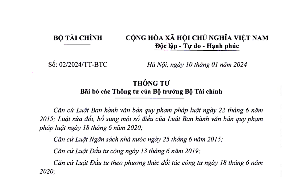 Thông tư số 02/2024/TT-BTC bãi bỏ 7 thông tư trong lĩnh vực đầu tư, đầu tư công