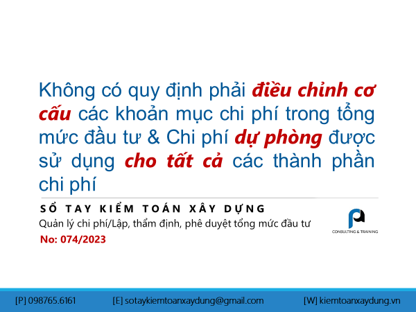 Không có quy định phải điều chỉnh cơ cấu các khoản mục chi phí trong tổng mức đầu tư & Chi phí dự phòng được sử dụng cho tất cả các thành phần chi phí