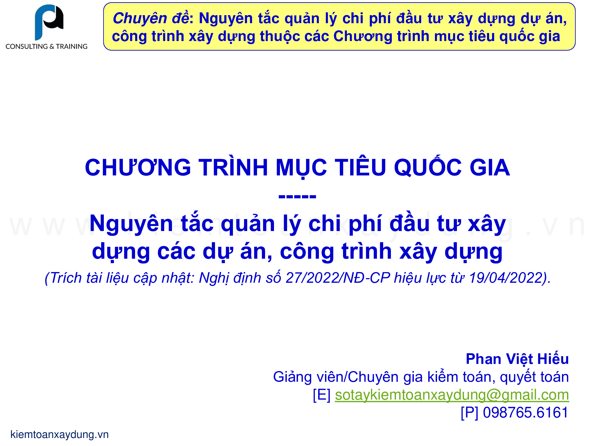 Nguyên tắc quản lý chi phí đầu tư xây dựng dự án, công trình xây dựng thuộc các Chương trình mục tiêu quốc gia