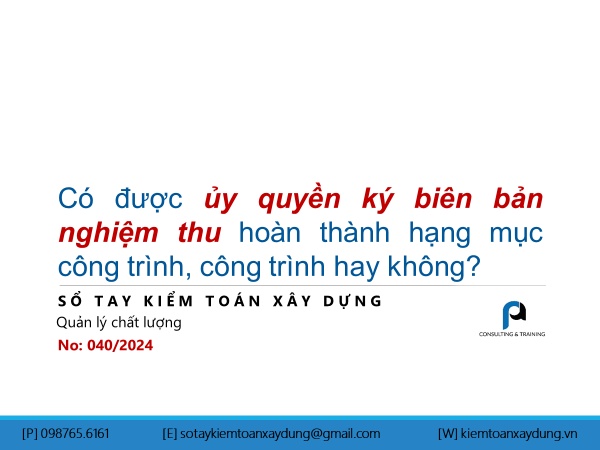 Có được ủy quyền ký biên bản nghiệm thu hoàn thành hạng mục công trình,...